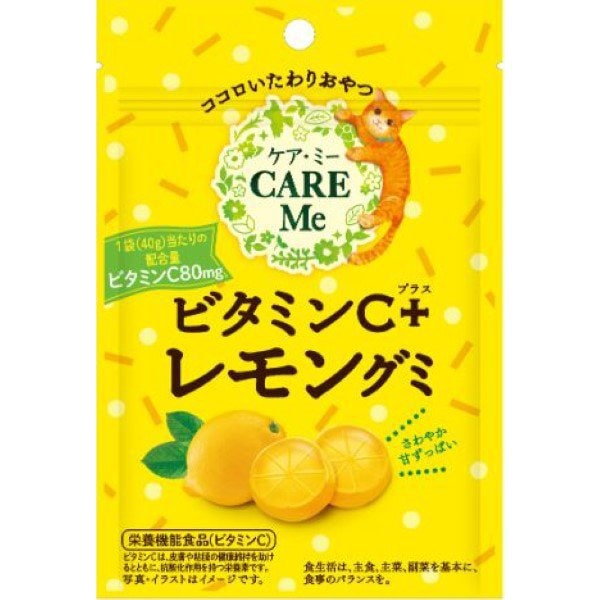 펨케어를 테마로 한 과자 브랜드 「CARE Me(케어・미)」: 1봉지로 비타민 C를 보급할 수 있는 구미입니다. 펨케어를 테마로 한 과자 브랜드 "CARE Me (케어 미)"입니다. 브랜드 로고 주위에는 고양이의 일러스트들이. 사랑스러운 고양이들의 다양한 표정으로 치유됩니다.
