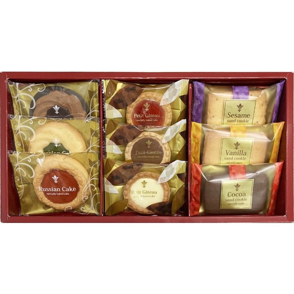 다양한 종류의 구운 과자 포장: 차의 시간에 아야를 더해주는 버라이어티 풍부한 구운 과자를 담은 호화로운 선물입니다.