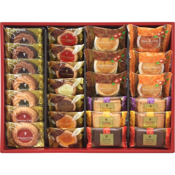 다양한 종류의 구운 과자 포장: 차의 시간에 아야를 더해주는 버라이어티 풍부한 구운 과자를 담은 호화로운 선물입니다.