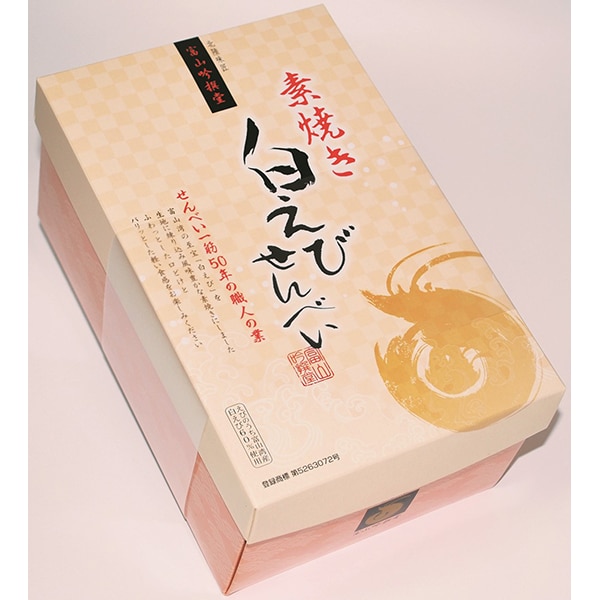 도야마만의 하얀 새우를 사용: 도야마의 특산품인 하얀 새우를 새우의 비율로 60% 사용하고, 저온에서 차분히 구워 냄새, 풍미, 입맛을 중시한 조건 센베입니다.