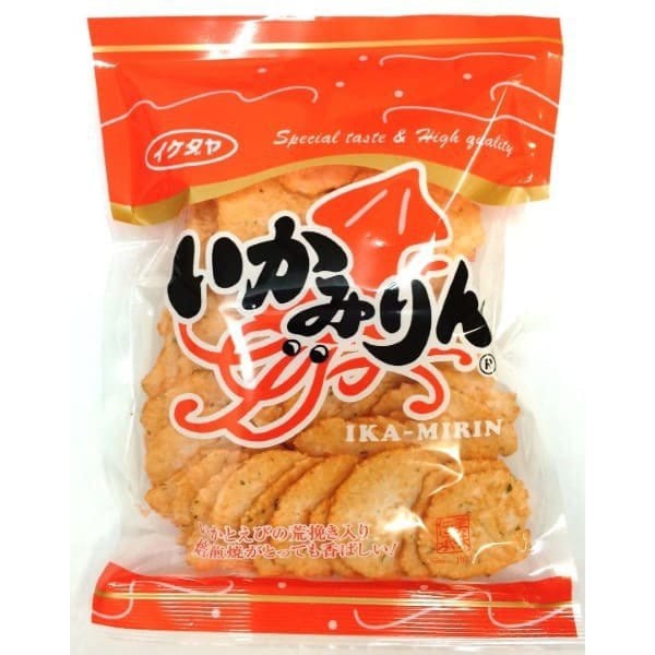 : 반죽에 오징어, 새우를 반죽, 구워, 특제 미림 간장으로 양념한 센베이입니다.