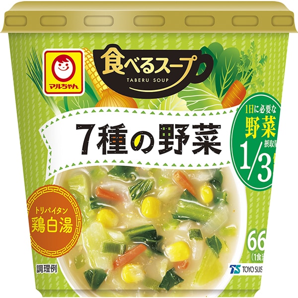 : 7종의 야채로 하루에 필요한 야채 섭취량 350g의 3분의 1이 들어간 닭 백탕 수프.