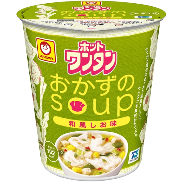일본식 국물에 듬뿍 재료의 원탄 수프. : 해산물 추출물과 다시마 추출물을 베이스로, 닭고기와 표고버섯의 맛을 더해 담백하게 마무리한 일본식 짠맛 스프. 미역 · 파 포함.