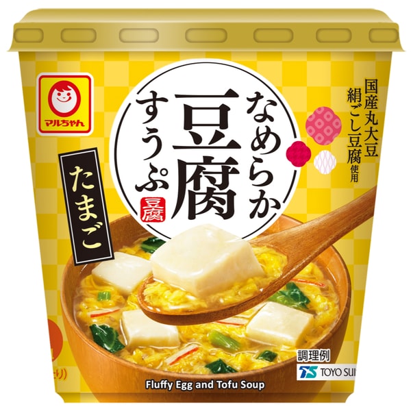 부드러운 두부 닭고기 달걀 스프. : 매끄러운 식감의 국산 둥근 대두 비단 두부, 가키타마, 진겐채, 게 게, 파, 참깨.