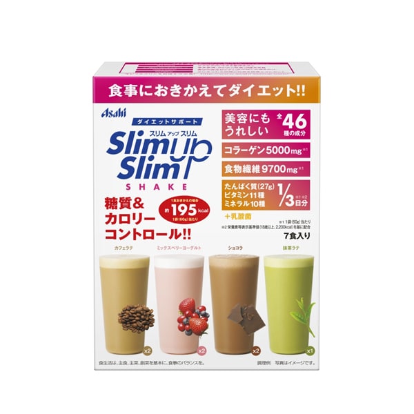 식사 대체 쉐이크: 1식(60g)당 약 195kcal, 탄수화물은 약 15g. 바리에이션을 즐길 수 있는 4종의 풍미들이로 맛있게 다이어트 서포트. 미용계 성분도 플러스한 다이어트나 미용을 위한 식사 대체 쉐이크입니다.