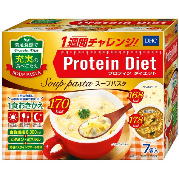 먹고 맛 충실, 본격 풍미의 스프 파스타: 「프로틴 다이어트 스프 파스타」는, 생리학, 영양학의 관점에서 개발한 오키아케 다이어트 식품. 풍미 풍부한 맛에 더해, 쇼트 파스타로 씹는 맛도 제대로. 평상시의 식사와 변함없는 만족감으로 건강한 칼로리 컨트롤을 실시할 수 있습니다.
