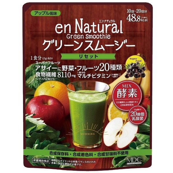 이너 깨끗함을 목표로 하는 분에게 자연파 그린 스무디: 야채와 과일 아울러 18종입니다. 믹서 필요없이 물로 섞는 것만으로 그린 스무디가 완성됩니다. 야생초 등 100종류 이상의 식물로 만들어진 식물 발효 엑기스와 활성형 효소(곡물 발효 엑기스)를 조합하여 배합했습니다. 이너 깨끗하게 주목해, 수용성 식이 섬유(아카시아 화이버·글루코만난)와 불용성 식이 섬유(애플 화이버)의 자연파 식이 섬유를, 더블로 배합하고 있습니다. 유산균(살균)도 17g당 20억개를 섭취할 수 있습니다.