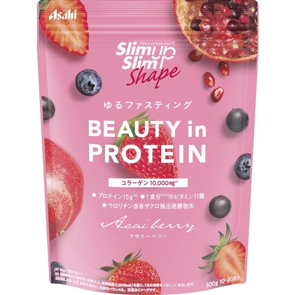 특징: 미용 성분의 콜라겐 10,000mg을 포함한 단백질 15g과 1식분의 비타민 11종, 더욱 주목의 성분 「우롤리틴」도 배합.