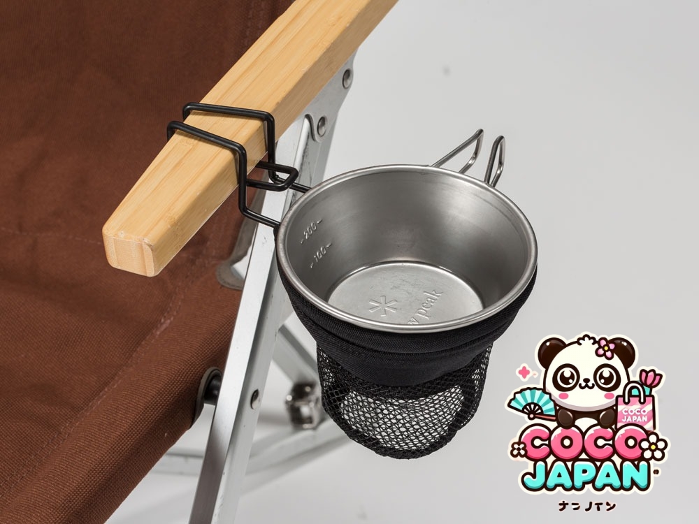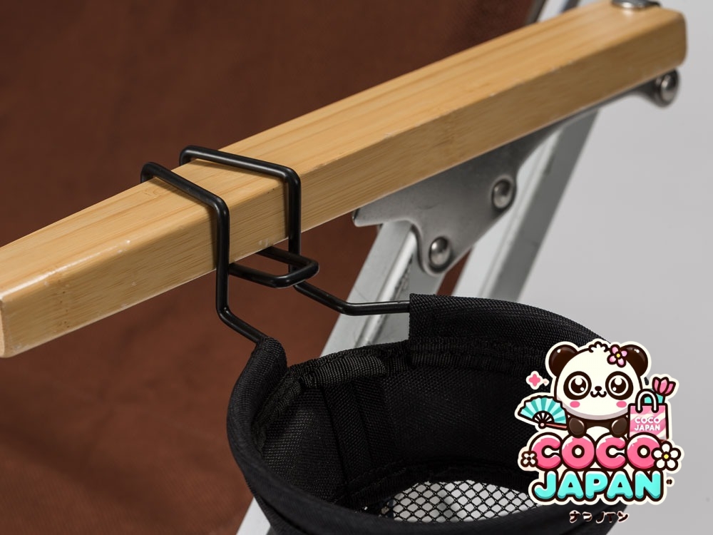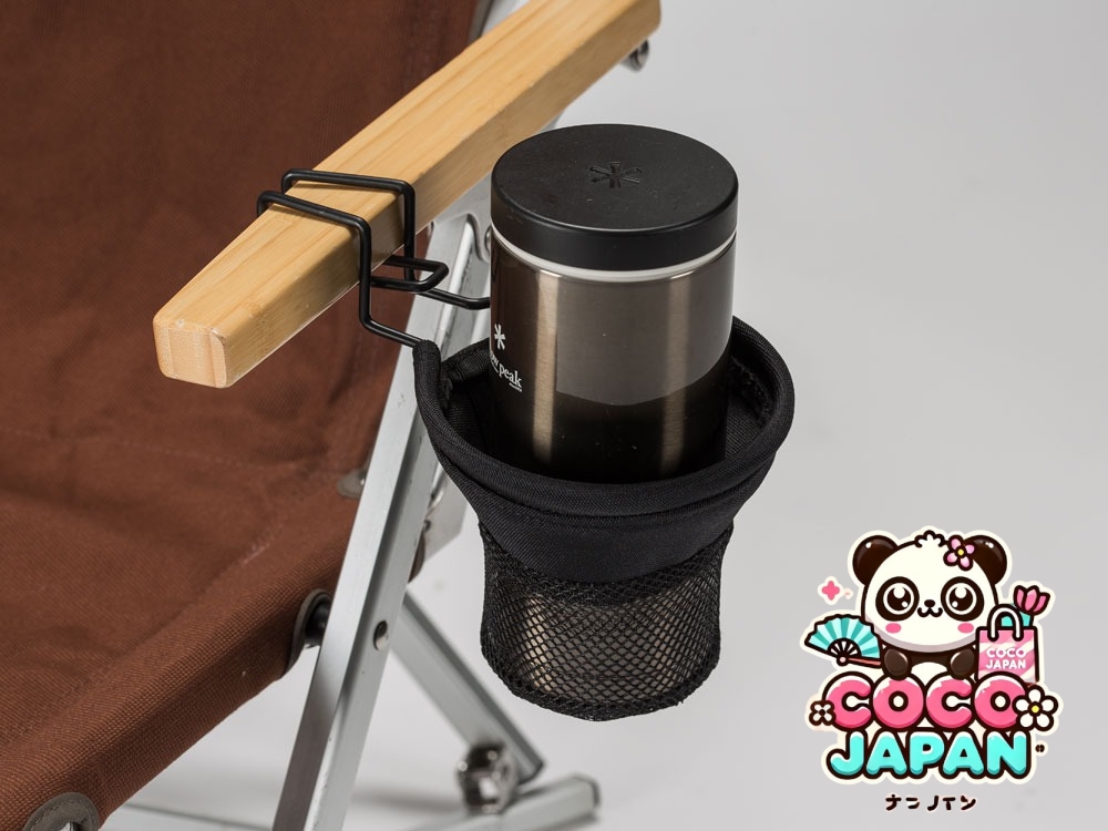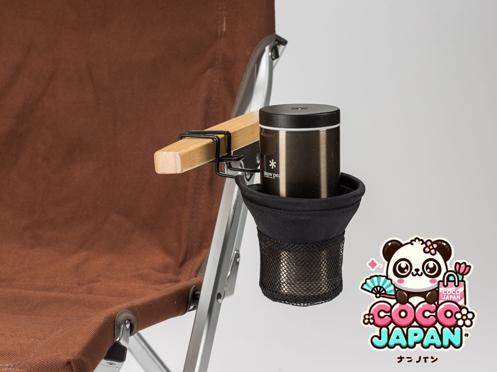 낮은 의자에 붙어있는 컵 홀더.