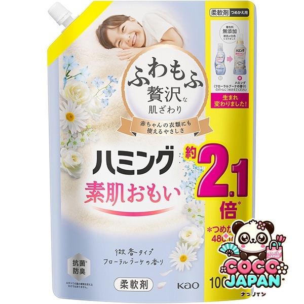 푹신푹신. 모후 모후. 호화스러운 피부 ざわり: ●아기의 의류에도 사용할 수 있는 부드러움 ●미향 타입 플로럴 꽃다발의 향기 ●착색료 무첨가 ●천연 유래의 유연 성분 ●씻어 주름을 방지 ●꽃가루・정전기 방지 ●항균 ※방취 ※모든 균의 증식을 억제하는 것은 아닙니다.