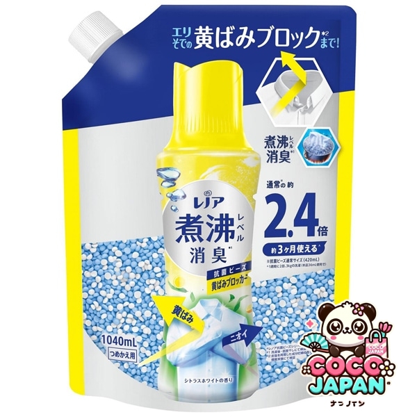 【특징】: ●세제・유연제로는 떨어지지 않는 냄새에 ※1 끓는 레벨의 소취력※2. (※1P&G사 세제・P&G사 유연제비 ※2세탁 후・방 말린에서 검증) ●에리소데의 황변 블록※3까지. (※3피지를 재현한 성분과 면의 천의 모의 실험으로 검증) ●세탁조의 방곰팡이※4도. (※4 이미 부착되어 있던 곰팡이나 더러움을 없애는 것은 아닙니다) ●의류가 소취 필터에. ●12주간 소취력이 계속된다※5. (※5 보관 상태에서) ●유연제에 비해 초흡수력※6. (※6P&G사 유연제비・복수회 세탁 후) ●세탁의 시작에 넣을 뿐. 세로형·드럼식 어느 쪽이라도 OK. ●통상※7의 약 2.4배. 약 3개월 사용할 수 있는※8. 리필용. (※7 항균 비즈 통상 사이즈 420ml ※8 1주일에 2회, 3kg의 세탁 본품 36ml 사용으로)