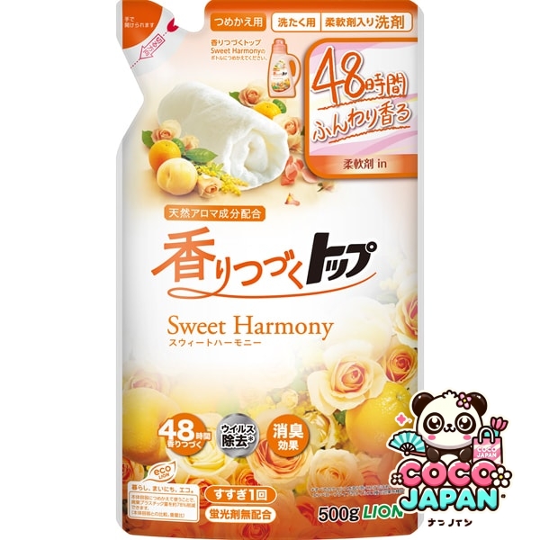 특징 : ● 독자적인 향기 이어지는 메커니즘으로 씻을 때부터 입을 때까지 기분 좋은 향기가 오래 지속. 1. 식물 태생의 유연 성분 배합으로, 의류를 통통 마무리한다. 2. 천연 아로마 성분 배합으로 부드럽게 달콤한 과일 & 꽃 향기. 그래서 사용할 때마다, 입을 때마다, 기분 좋은 향기에 싸여, 세탁 후도 행복한 기분에. 3. 바이러스 제거에도 대응. 4. 헹굼 한 번에 OK.