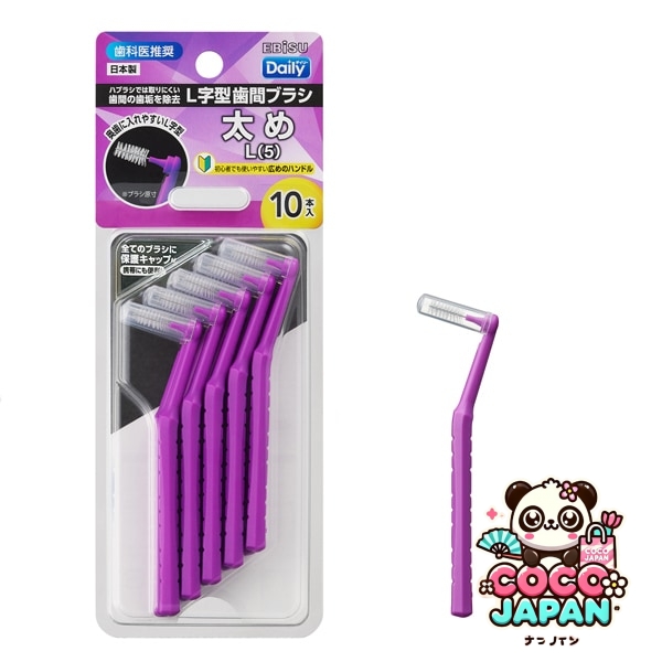 【특징】: 칫솔에서는 취하기 어려운 치아 사이의 플라크를 제거. 손질하기 어려운 안쪽 치아 사이에 넣기 쉬운 L 자형 치간 브러쉬. 모든 브러쉬에 보호 캡 첨부로 위생적이고 휴대에 편리. 초보자라도 안정적으로 가질 수 있는 넓은 핸들로 방향이 정해지기 쉽고, 노리기 쉽다. 잇몸이 크게 퇴축 틈새가 넓게 보이는 분에 굵은 (L) 사이즈. ■일본제■치과의사 추천