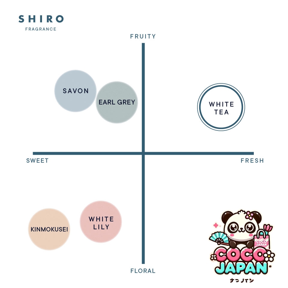 상쾌한 감귤류 속에 깊이 있는 티가 향기나는, 차분한 "화이트 티"의 향기.