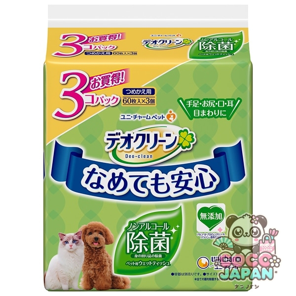 애완 동물이 핥아도 안심 무알코올 제균 수분 듬뿍 애완 동물 용 젖은 티슈입니다.