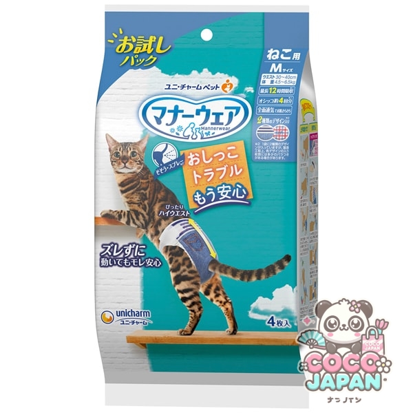 • 유니 매력 애완 동물 매너웨어 고양이 용 M 사이즈 시험 팩 4 장