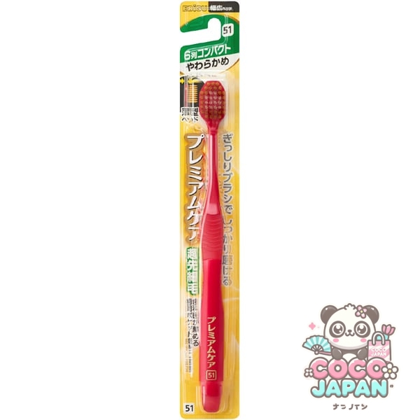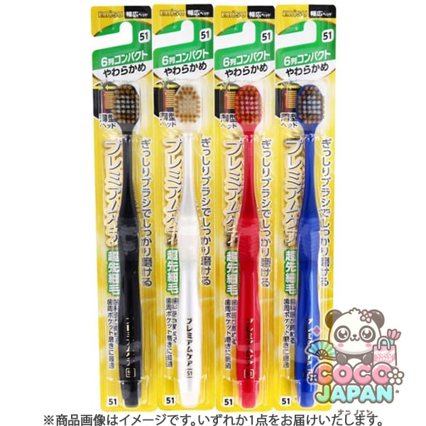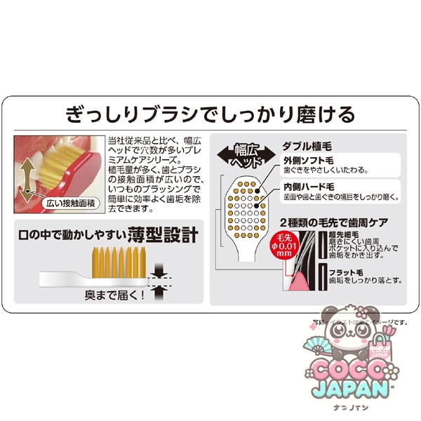 허브러시의 상식을 바꾸는 폭넓은 헤드의 「프리미엄 케어 시리즈」한 번 사용하면 차이를 아는 극상의 연마 기분.헤드의 두께가 메이커 종래품보다 약 25% 얇아져 입안에서 움직이기 쉬운 박형 설계.