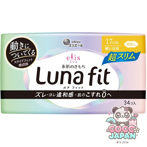 생리대 엘리스 맨살의 기모치 루나핏트 울트라 슬림 (가벼운 일용) 날개 없음 17 cm 34 코 [생리 용품]
