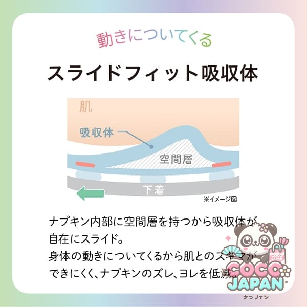엘리스에서 태어난 루나핏은, 독자 개발의 「슬라이드 피트 흡수체」가 몸의 움직임에 대해 오는 것으로부터, 냅킨이 언제라도 쾌적 포지션을 유지.