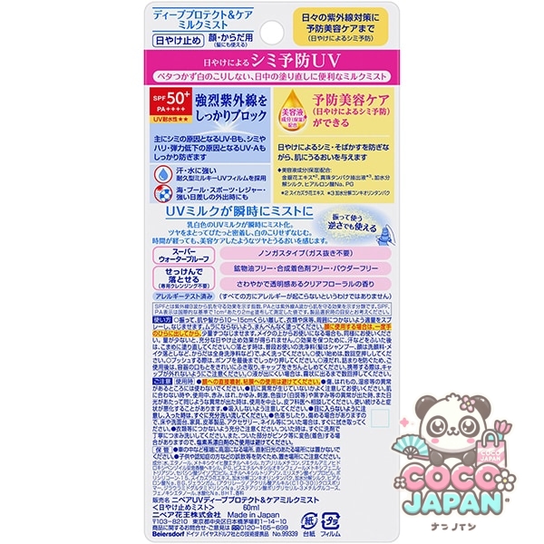 햇볕에 의한 기미 예방 UV. 끈적 끈적이지 않고 흰색이 칠하지 않는 낮 동안 다시 채우기에 편리한 우유 미스트. SPF50+/PA++++/UV 내수성★★