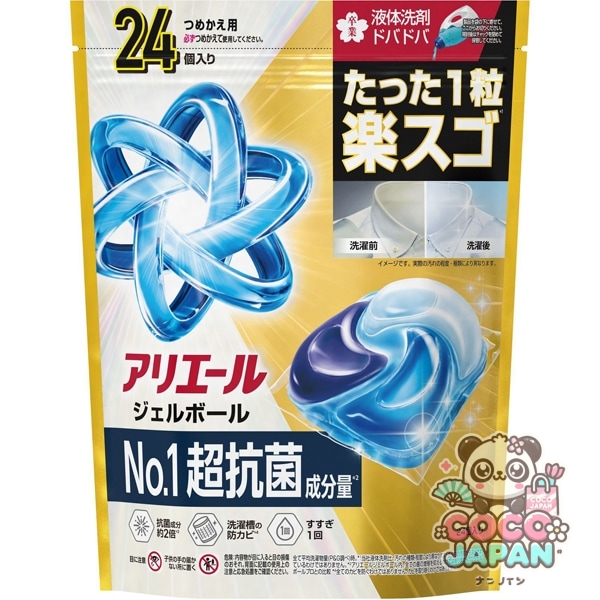 • ARIEL 아리에르 젤 볼(캡슐) 프로 파워 초항균·세정 클린 프레쉬의 향기 리필 하이퍼 점보 24개 [세탁 세제]