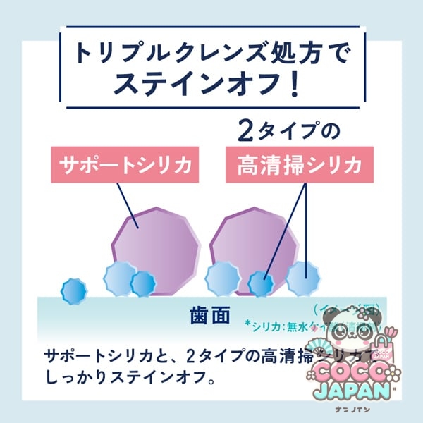 치아의 긁힘・황변 등의 스테인(착색 더러움)을 떨어뜨려, 붙기 어렵게 하는 것으로, 치아 본래의 흰색을 되찾아, 깨끗한 치아를 유지하는 미백 치약. 확실히 스테인을 떨어뜨리는 "트리플 클렌즈 처방"타입입니다. 불소 배합으로 충치도 방지합니다. 상쾌한 꿀 레몬이 쿵과 달콤한 향기로운 맛. 확실히 스테인 케어를하고 싶은 분에게 추천합니다.