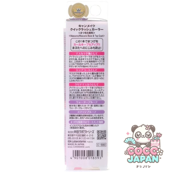 「마스카라 기초」 「탑 코트」 「마스카라」로서 1개 3역으로 사용할 수 있다! 뛰어난 컬 & 유지 효과로 눈동자 패치리! 당신의 마스카라 위에서 겹쳐 칠하는 것만으로, 마치 아이러시 컬러로 들어 올린 것 같은 린 컬이 장시간 지속됩니다. 물・눈물・땀・피지에 강한 워터프루프 타입&스매지프루프 타입.