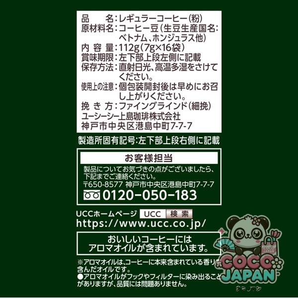 기타 ●내용량:112g ●명칭:레귤러 커피(가루) ●원재료명:커피콩 ●보존 방법:직사 광선, 고온 다습을 피해 주세요. ●영양 성분 표시[-]:에너지:-kcal, 단백질:-g, 지질:-g, 탄수화물:-g, 식염 상당량:-g●음식 알레르기:없음 다른 UCC의 식품&음료・술을 찾는 식품&음료・술 UCC 유시시 > 커피 드링크 UCC 유시 유시시> 커피 콩 / 인스턴트 커피 UCC 유시시> 드립 백 커피 UCC 유시시