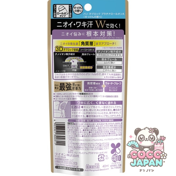 • 밴Ban땀 블록 백금 롤온 40mL 비누의 향기 [제한 디오도란트 의약부외품]