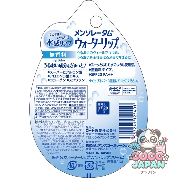 듬뿍 물을 안고 입술을 부드럽게하는 "멘솔 래텀 워터 립". 슈퍼 히알루론산※1(촉촉한 성분)과 콜라겐※2(촉촉한 성분)을 배합해, 푹 익숙한 물과 같은 사용감으로 신선한 입술을 목표로 합니다. 또한 건조뿐만 아니라 자외선으로부터 입술을 보호합니다 (SPF20 / PA ++). 무향료 타입입니다.