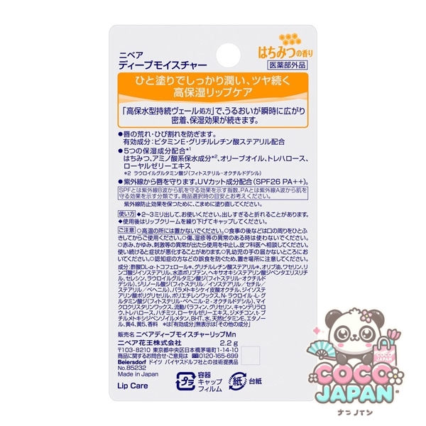 한 칠로 확실히 젖는다. 고 보습 · 윤기 계속 립 크림. 「고보수형 지속 베일 처방」으로, 수분이 순간에 퍼져 밀착. 보습 효과가 계속됩니다. 입술의 거칠기, 균열을 방지합니다. 유효성분(비타민 E·글리틸레틴산스테아릴) 배합. 자외선으로부터 입술을 보호합니다. UV컷 성분 배합(SPF26/PA++). 의약 부외품.