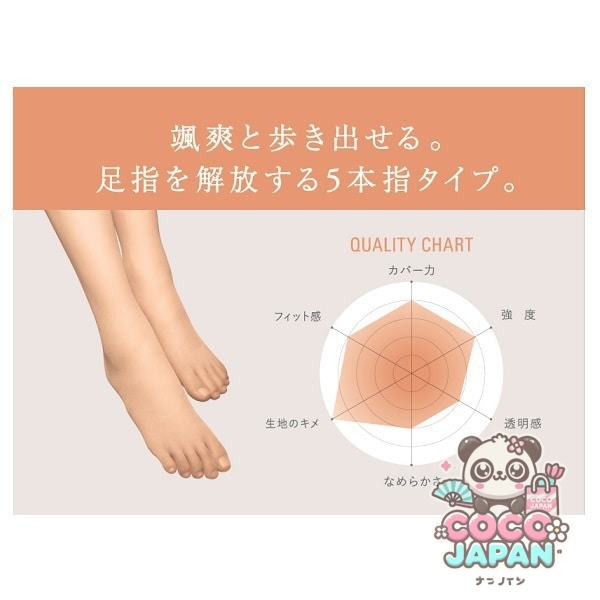 맨발처럼 보이고, 맨발보다 기분 좋은, 5개 손가락. 발가락이 제대로 열려 걷는 방법까지 아름답게. 게다가 언제나 바삭바삭. 손가락이 붙어 있으면 다리가 푹 빠지지 않고 부자연스러운 걷는 방법이 되기 쉽다. 5개의 손가락이 깨끗하게 열려, 자유롭게 움직일 수 있기 때문에, 손가락 1개 1개에 자연과 힘이 들어가 건강하고 아름다운 걷는 방법을 할 수 있도록. 각각의 손가락이 나뉘어 있기 때문에, 끈적거리지 않고, 맨발로 하는 것보다 쾌적합니다.