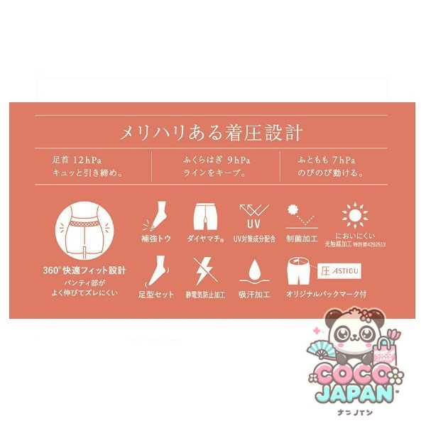 계약과 착용감. 둘 다 실현하고, 깨끗이 미각에. 다리를 과학한 단계 착압으로 효과적으로 계약. 적당한 서포트감으로 락에 움직일 수 있는 허벅지 5hPa, 저녁까지 미각 라인이 계속되는 종아리 7hPa, 강한 가압으로, 꽉 계약 발목 12hPa.