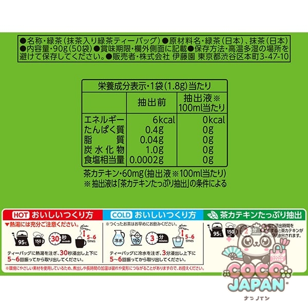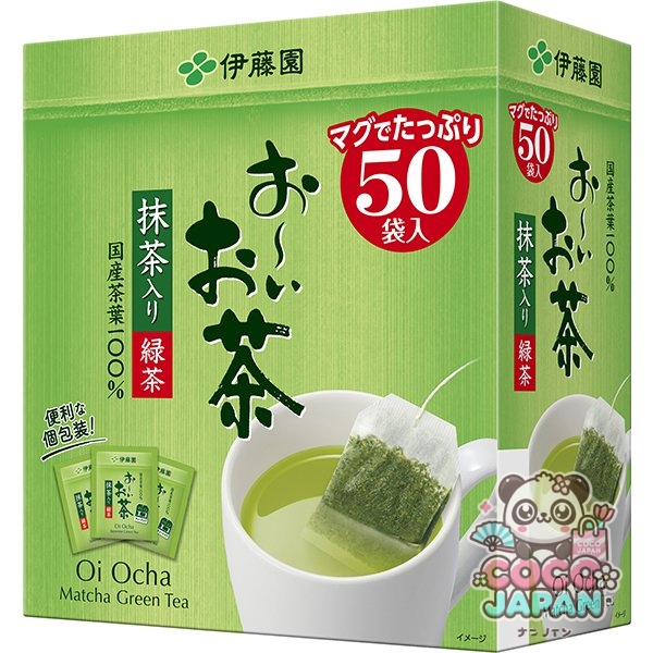 대용량 50봉이 들어간 오~이 차 녹차 티백. 「오~이 차」는 오타니 쇼헤이 선수와 글로벌 앰배서더 계약을 했습니다.