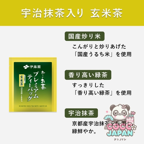 급수로 넣은 맛을 간편하게 즐길 수 있는, 1봉으로 2잔분 맛있는 티백입니다. 부드러운 볶음 쌀을 사용하여 깔끔한 향기로운 녹차, 입맛이 좋은 석구 갈기의 교토 부산 말차를 혼합했습니다 (국산 100 %, 삼각 나일론 가방 사용).